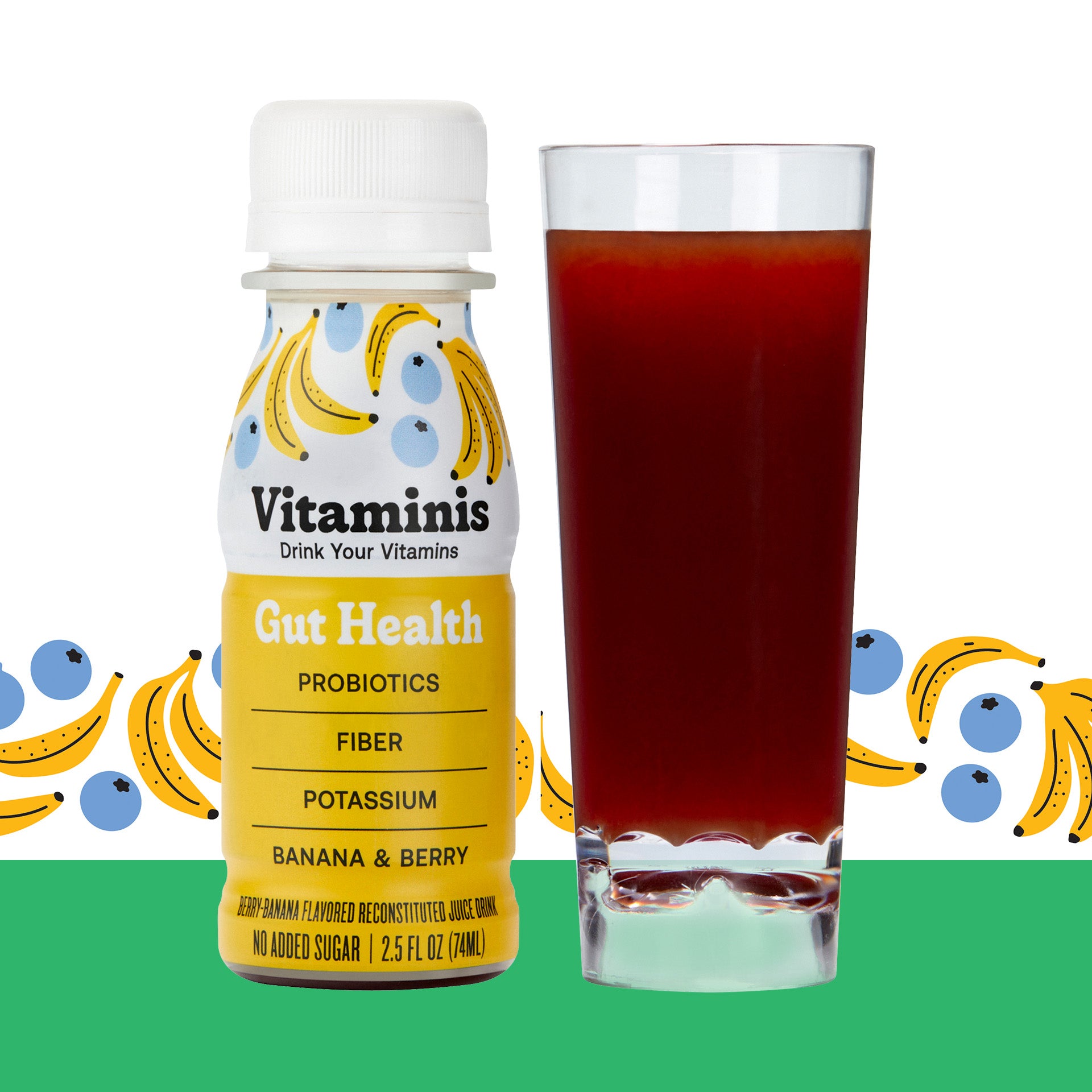 Our functional Gut Health juice shot is packed with probiotics (as much as 2 cups of yogurt!), potassium (more than a banana!), and fiber (as much as 2 cups broccoli!) to support normal, healthy gut function, including regularity, decreased bloating and better digestion.